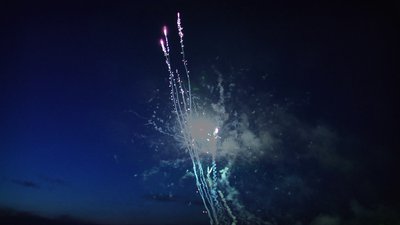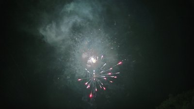 Red pearl with white strobe.Green blue white strobe with spinner.Brocade crown with blue pearl to silver fish.Red wave chrys with crackling.Red head silk willow with crackling.