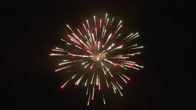 brocade to red/blue; flower crown; colorful palm to crackling; brocade to red blue pearls; colorful dahlia with white glittering; brocade with white glittering cylinder shells 5" lenght