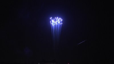 1st &5th, Time rain grain 2nd &6th, Red dahlia white glittering 3rd &7th, Red glittering willow 4th & 8th, Brocade time rain willow green glittering 5th &10th, Whistles, time rain mine w/ Ti-salute